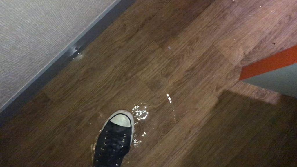 My festival was in East London and finished at 11pm, so I didn’t get back to the hotel until around 12.30, where I found all the guests waiting in the lobby. Other guests reported water streaming down walls and through light fittings and electrical sockets. Water was visably dripping through the ceiling in the hallways, and the leak went all the way from the seventh floor down to the toilets on the ground floor by reception. Guests were a mix of upset, angry and confused, and above all concerned for their safety. It certainly didn’t seem like a good idea to go back to the rooms!