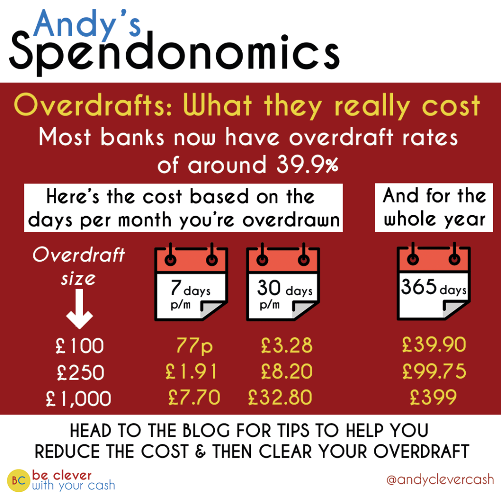In fact, at 40%, an overdraft is now one of the most expensive ways to borrow money! So if you regularly use one the best way to beat these costs is to clear the overdraft and get your bank balance back in the black.