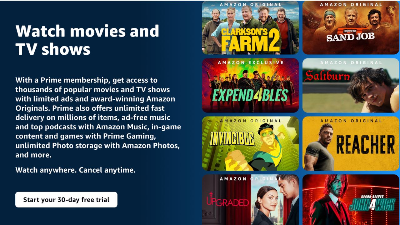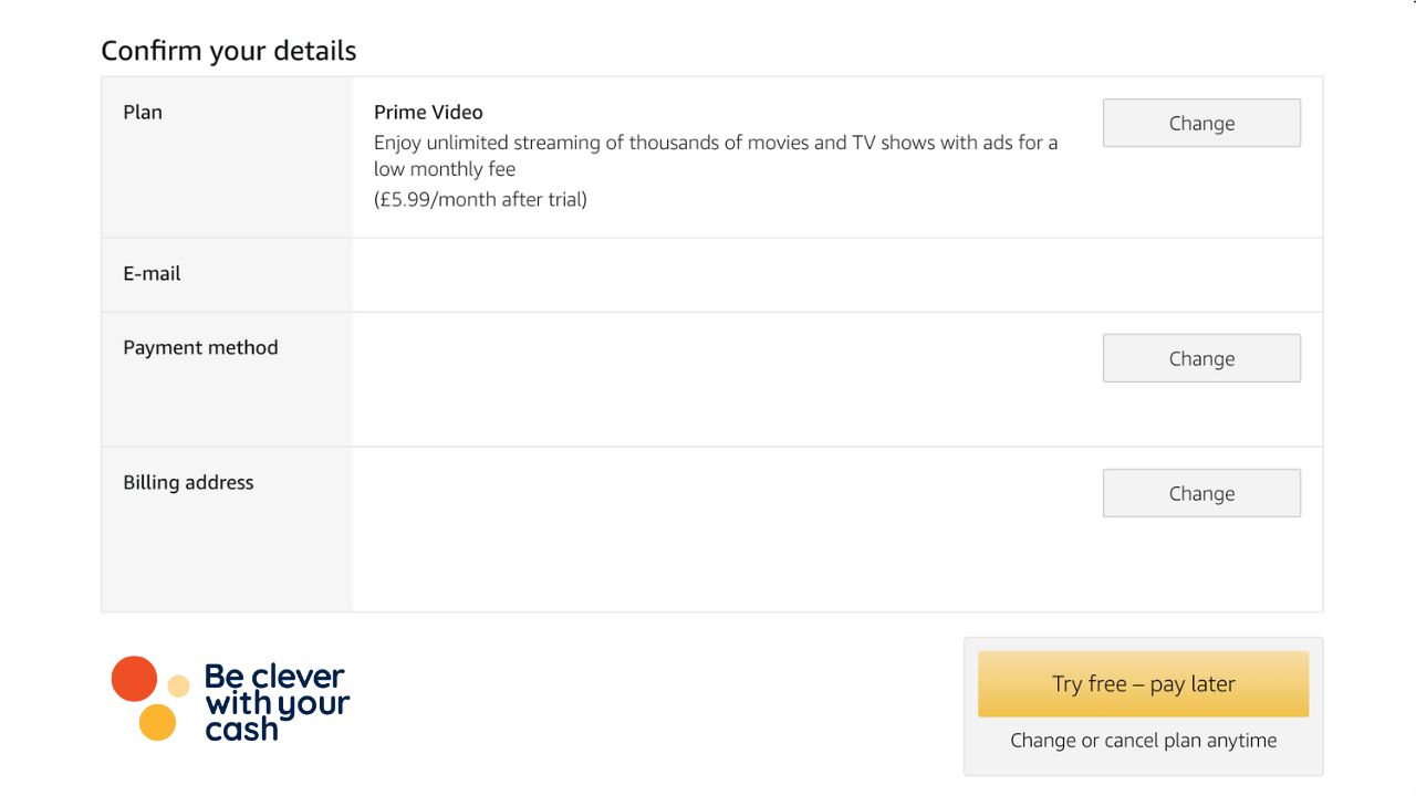 Amazon used to have its Prime Video plan on its main plan page. But as you can see below it’s no longer there. If you click on the ‘Start your 30-day free trial’ button you’ll be taken to a payment page.