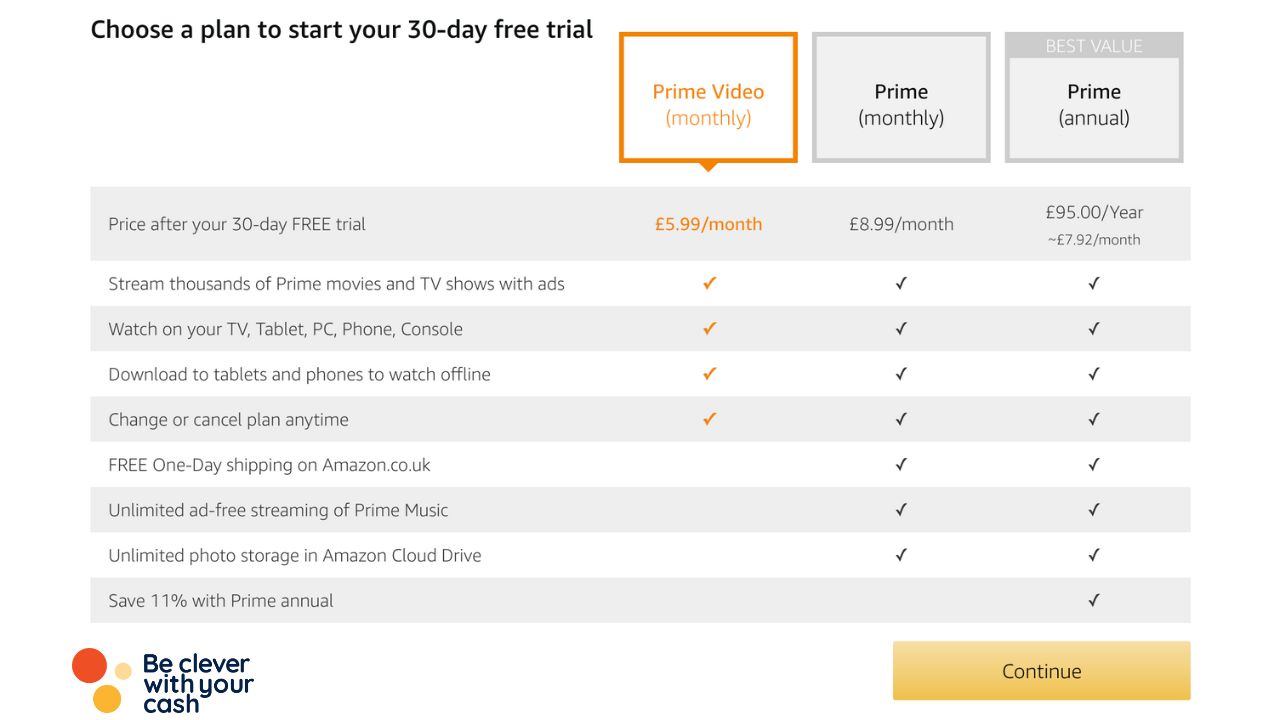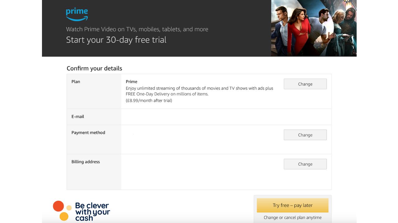 As I’ve not got Prime, Amazon’s offering me a 30 day free trial. After that it costs £8.99 a month. If you’re not eligible for the trial, it’ll likely just say you’ll be paying £8.99 as soon as you sign up.