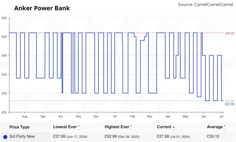 | Anker Power Bank | £19.99 | £27.99 | £27.99 | 0 months |