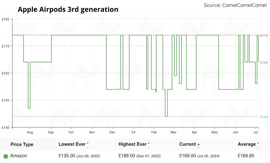 | Apple AirPods (3rd generation) | £169.99 | £169.99 | £149.99 | 8 months |
