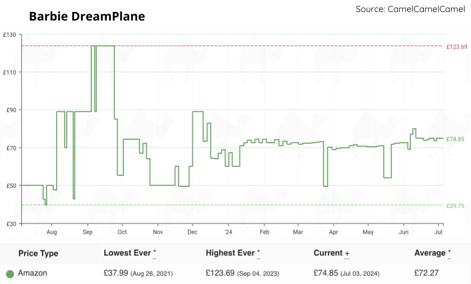 Just a month later, the Barbie DreamPlane was up for £39.79, so waiting just a little longer would’ve saved you an extra £13.20.