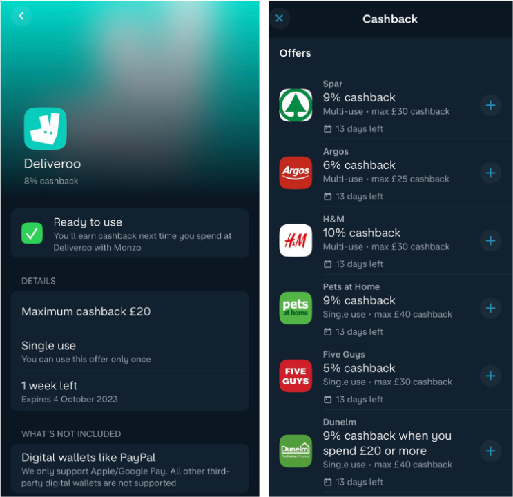 Monzo has launched a new feature to accounts which allows users to earn cashback when they shop at partner retailers.